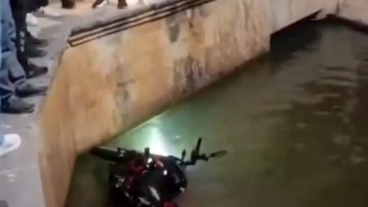 Şanlıurfa’da sürücüsünün kontrolünden çıkan motosiklet Balıklıgöl’e düştü.