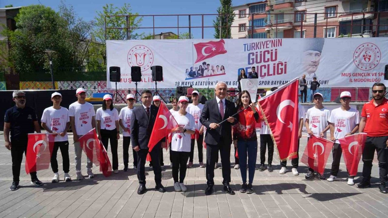 Muş’ta kent meydanında düzenlenen program, İl Gençlik ve Spor Müdürü Mehmet Arif Taşdemir’in Atatürk Anıtı’na çelenk sunumuyla başladı. Tören, saygı duruşunda bulunulması ve İstiklal Marşı’nın okunmasıyla devam etti. Programda, Cumhurbaşkanı Recep Tayyip Erdoğan ile Gençlik ve Spor Bakanı Osman Aşkın Bak’ın kutlama mesajları okundu.