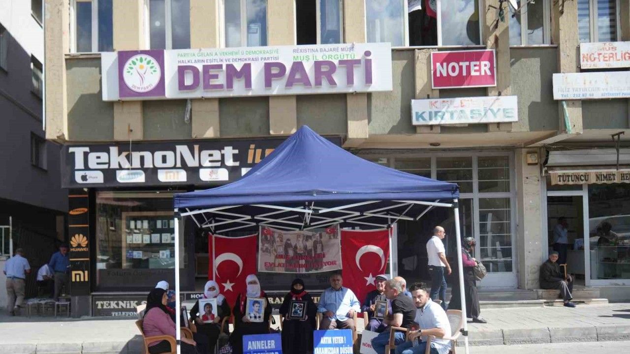 Muş’ta evlatlarına kavuşmak isteyen aileler, DEM Parti önündeki eylemlerini sürdürdü.