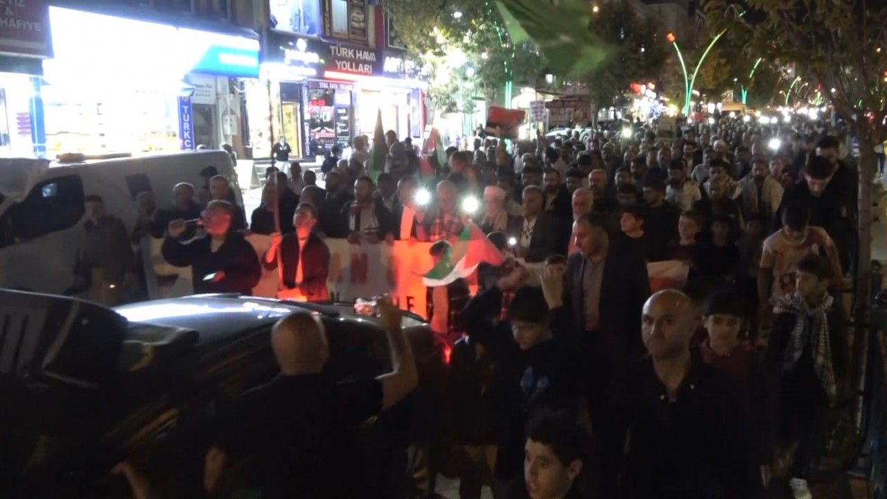 Muş’ta düzenlenen yürüyüşte yaklaşık 5 bin kişi, İsrail’in Gazze’ye yönelik saldırılarını protesto etti.