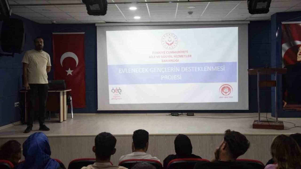 Muş Aile ve Sosyal Hizmetler İl Müdürlüğü tarafından 2025 Aile Yılı kapsamında yürütülen "Evlenecek Gençlerin Desteklenmesi Projesi" çerçevesinde evlilik kredisinden faydalanacak gençlere eğitim verildi.