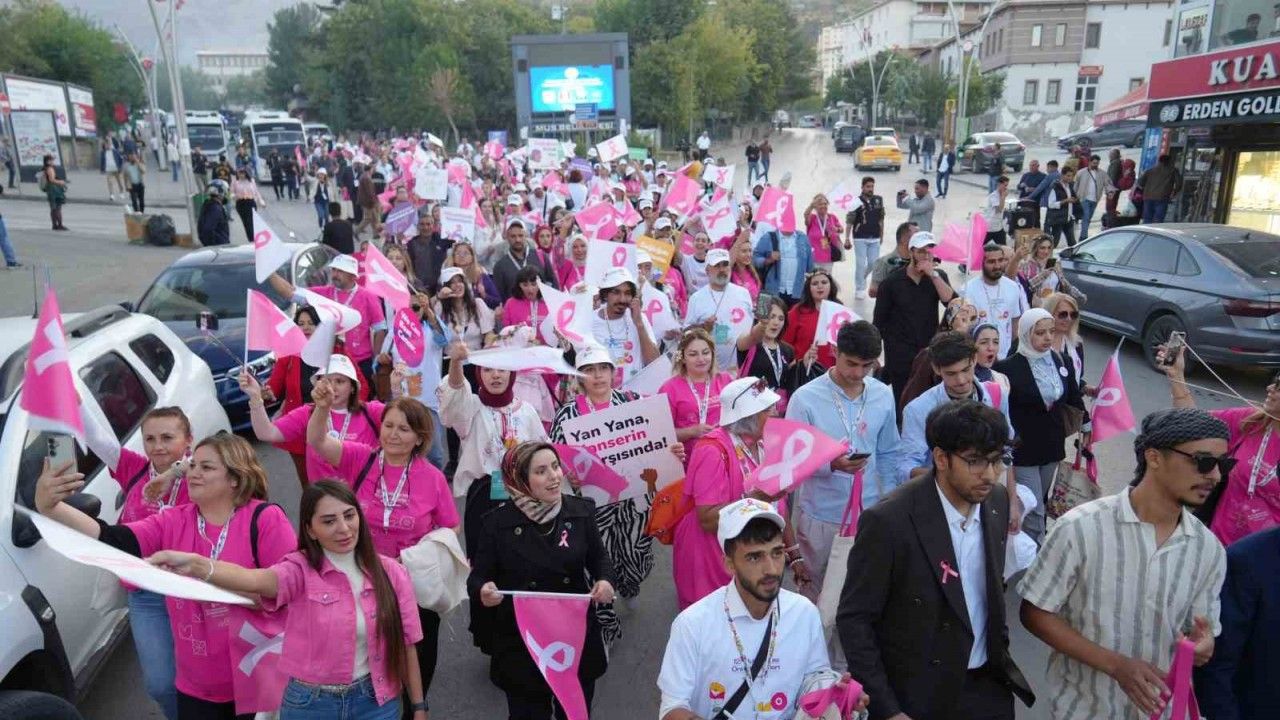 Muş’ta "12. Uluslararası Onkoloji Günleri" kapsamında gönüllüler ve akademisyenler, kansere dikkat çekmek için yürüyüş düzenledi.