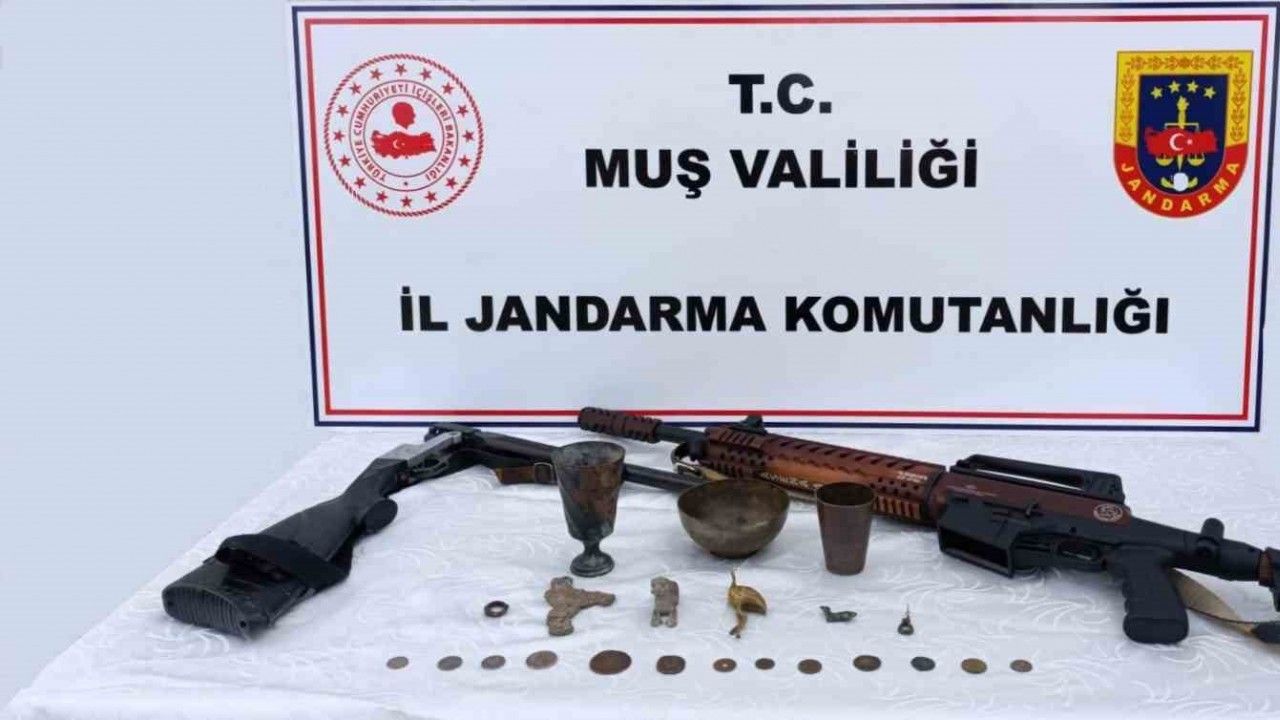 Muş İl Jandarma Komutanlığı ekiplerince düzenlenen operasyonda Urartu ve Roma dönemine ait olduğu değerlendirilen çok sayıda tarihi eser ele geçirildi.