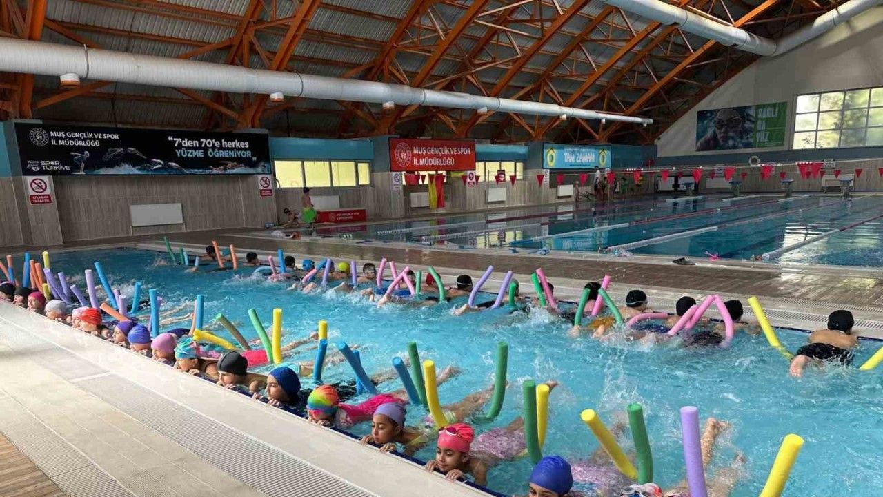 Muş’ta "Yüzme Bilmeyen Kalmasın" projesi çerçevesinde yüzlerce çocuk ve genç yüzme öğreniyor.