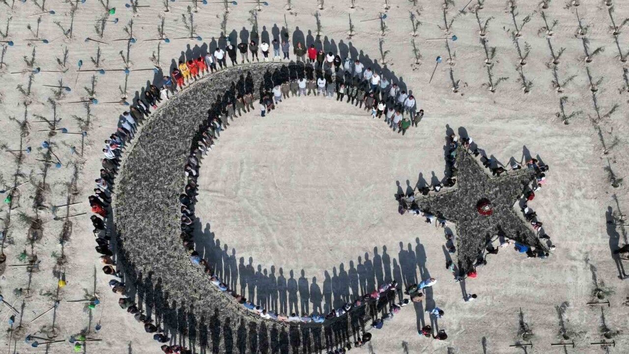Mut Orman İşletme Müdürü Utku Danış ise, “Cumhuriyetimizin yüzüncü yılında Mersin’in Mut ilçesinde, 2023 metrekare alanda Türk bayrağı, 2023 adet fidanla işledik. Ayrıca 2023 fidanın yanında tarihte kurulmuş 16 Türk devletini temsil eden 16 ayrı tür dikerek bu etkinliğimizi gerçekleştirdik. Bunların içerisinde Kızılçam, Mavi servi, Kara servi, Altuni mazı, Akasya, İncir, Zeytin, Lavanta, Gül, Çınar, Ardıç, Taflan, Harnup, Menengic, Ceviz ve Antep fıstığı kullanarak sahamızı güzelleştirdik Mut ilçemize ve Mersin’e hayırlı olması dileğiyle” dedi.