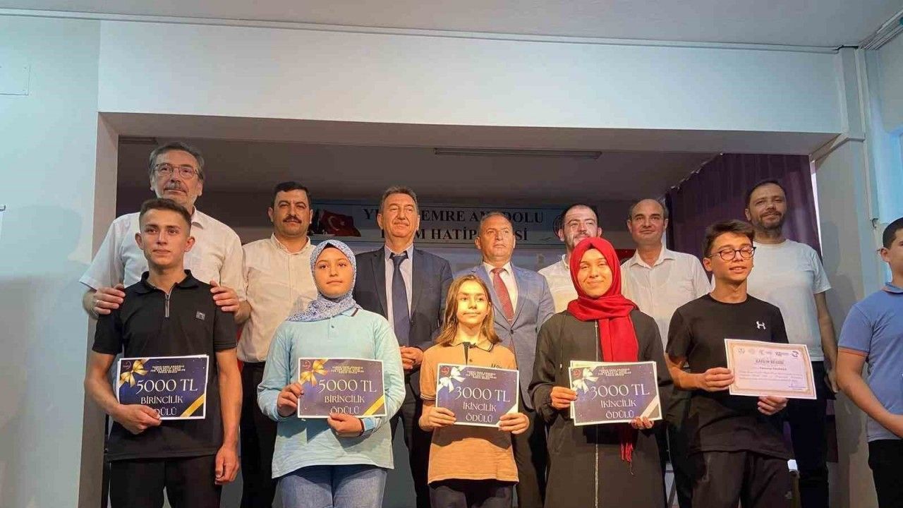 Manisa Yunus Emre Anadolu İmam Hatip Lisesi’nde düzenlenen yarışmada ödülünü alan İbrahim Müzaç, okuluna dönüşünde arkadaşları ve öğretmenleri tarafından coşkuyla karşılandı.