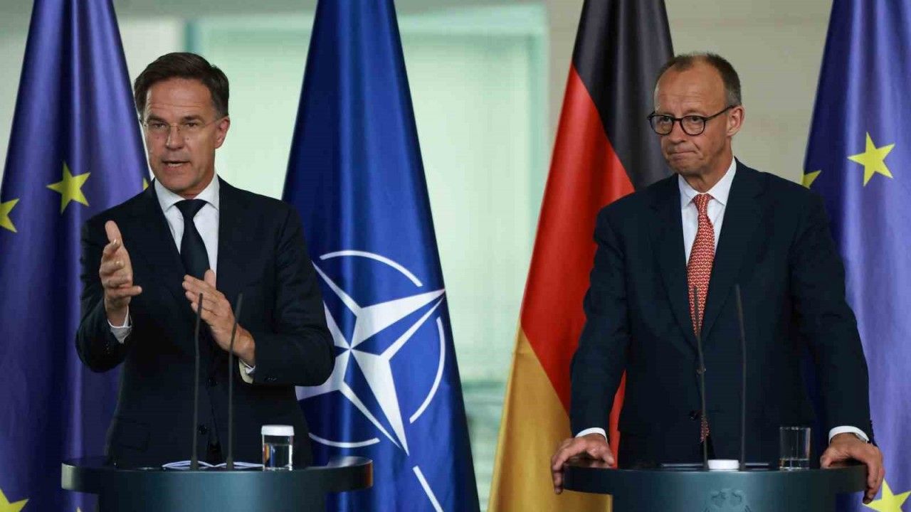 Merz, "Almanya 70 yıldır Kuzey Atlantik İttifakı’nın bir üyesi. NATO, bu ülkede üç nesildir özgür, barış ve refah içinde yaşamamızı sağlamada önemli bir rol oynadı" diye konuştu.