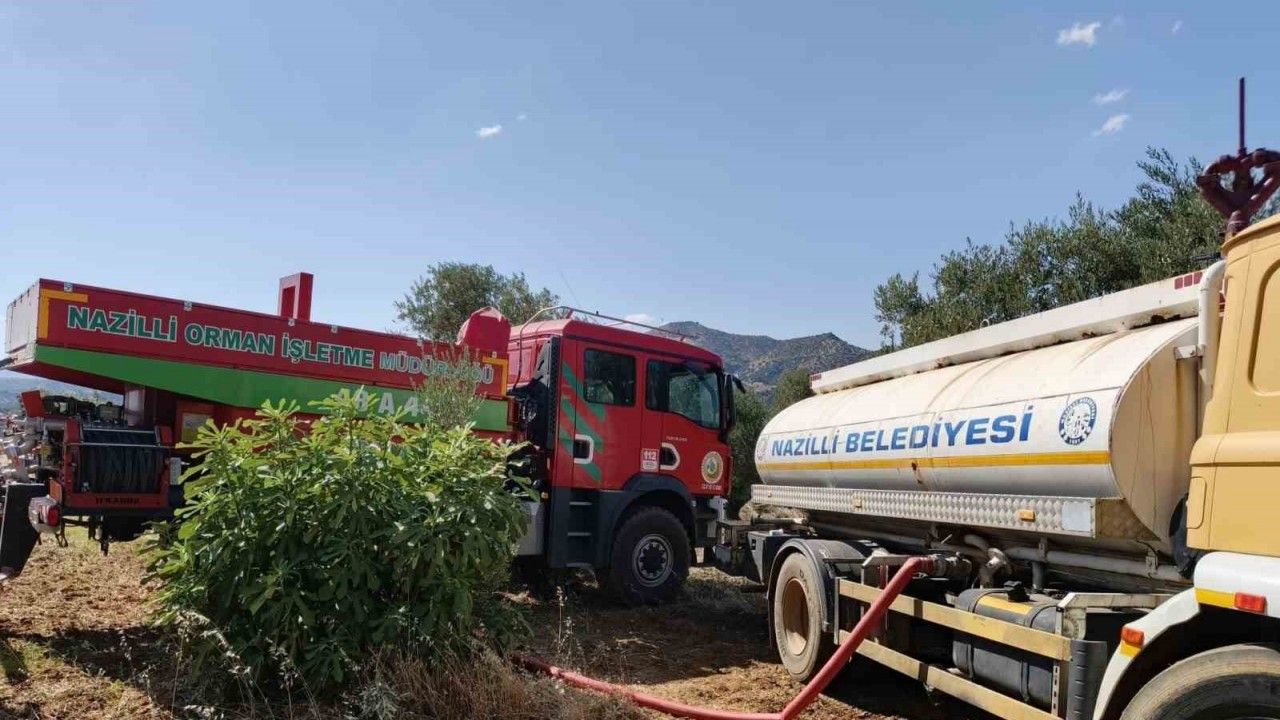 Nazilli Belediyesi ekipleri, İsabeyli Mahallesi’nde çıkan yangının söndürme çalışmalarına destek verdi.