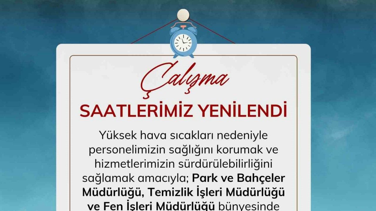 Nazilli Belediyesi, sağlık ve hizmet sürdürülebilirliği açısından dış saha personelinin mesai saatlerini yeniden düzenledi. Nazilli Belediyesi’nden yapılan açıklamada özellikle açık alanda çalışan personelin sıcak havadan olumsuz etkilenmemesi için 25 - 30 Temmuz 2025 tarihleri arasında geçerli olacak şekilde yeni mesai saatlerine geçildiği bildirildi. Yapılan duyuruda, "Yüksek hava sıcaklıkları nedeniyle personelimizin sağlığını korumak ve hizmetlerimizin sürdürülebilirliğini sağlamak amacıyla; Park ve Bahçeler Müdürlüğü, Temizlik İşleri Müdürlüğü ve Fen İşleri Müdürlüğü bünyesinde görev yapan saha ekiplerimizin çalışma saatleri güncellenmiştir. Yeni çalışma saatlerimiz 25 -30 Temmuz 2025 tarihleri arasında 07.00-13.30 şeklinde olacaktır" ifadelerine yer verildi.