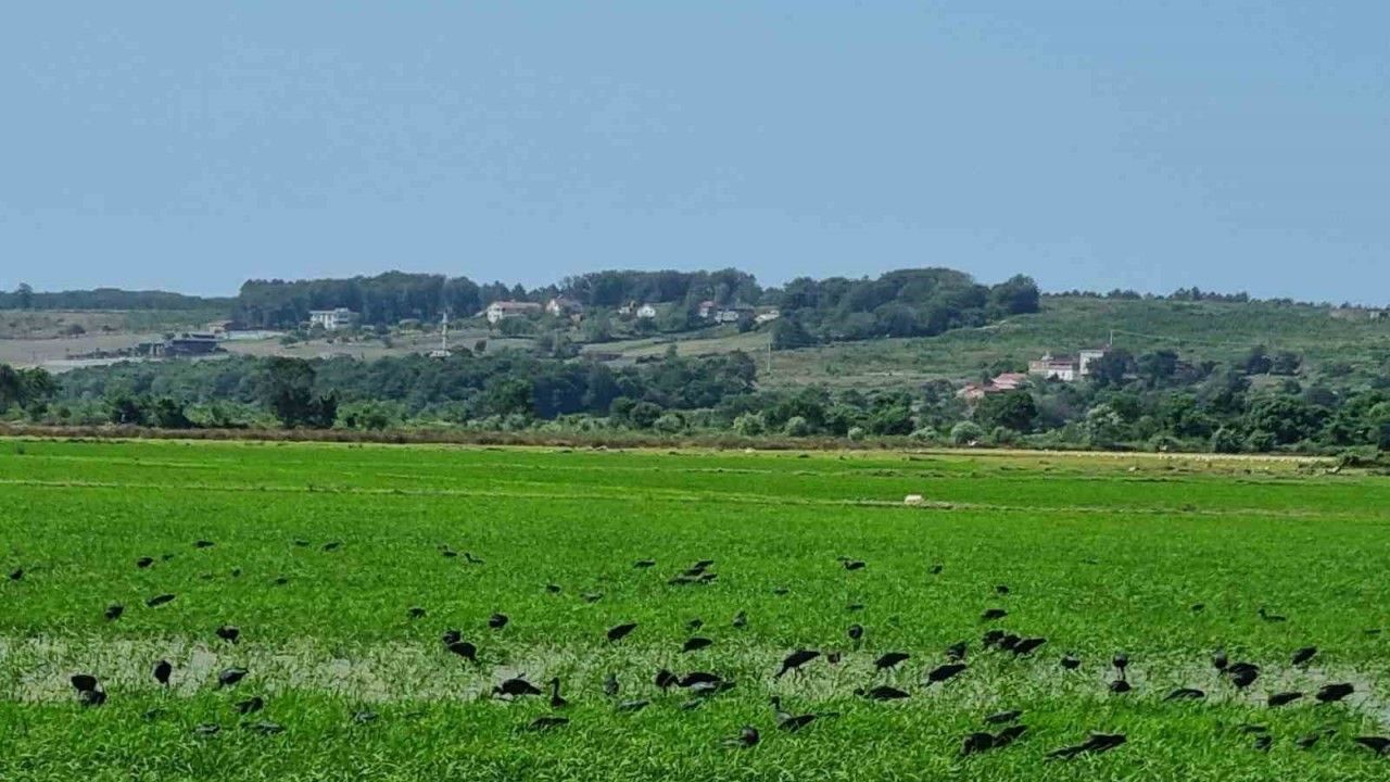 Türkiye’de nesli tükenen kuş türleri arasında yer alan, uzun kavisli gagası ve göz alıcı renkleriyle tanınan çeltikçi kuşları, sürü halinde görüntülendi. Sinop’un verimli çeltik tarlalarında yüzlerce kuşun aynı anda avlandığı anlar kameralara yansıdı. Nadir görülen çeltikçinin Sinop’ta görülmesi vatandaşları heyecanlandırırken, yetkililer kuşa ve yavrularına zarar verilmemesi konusunda vatandaşları uyardı.