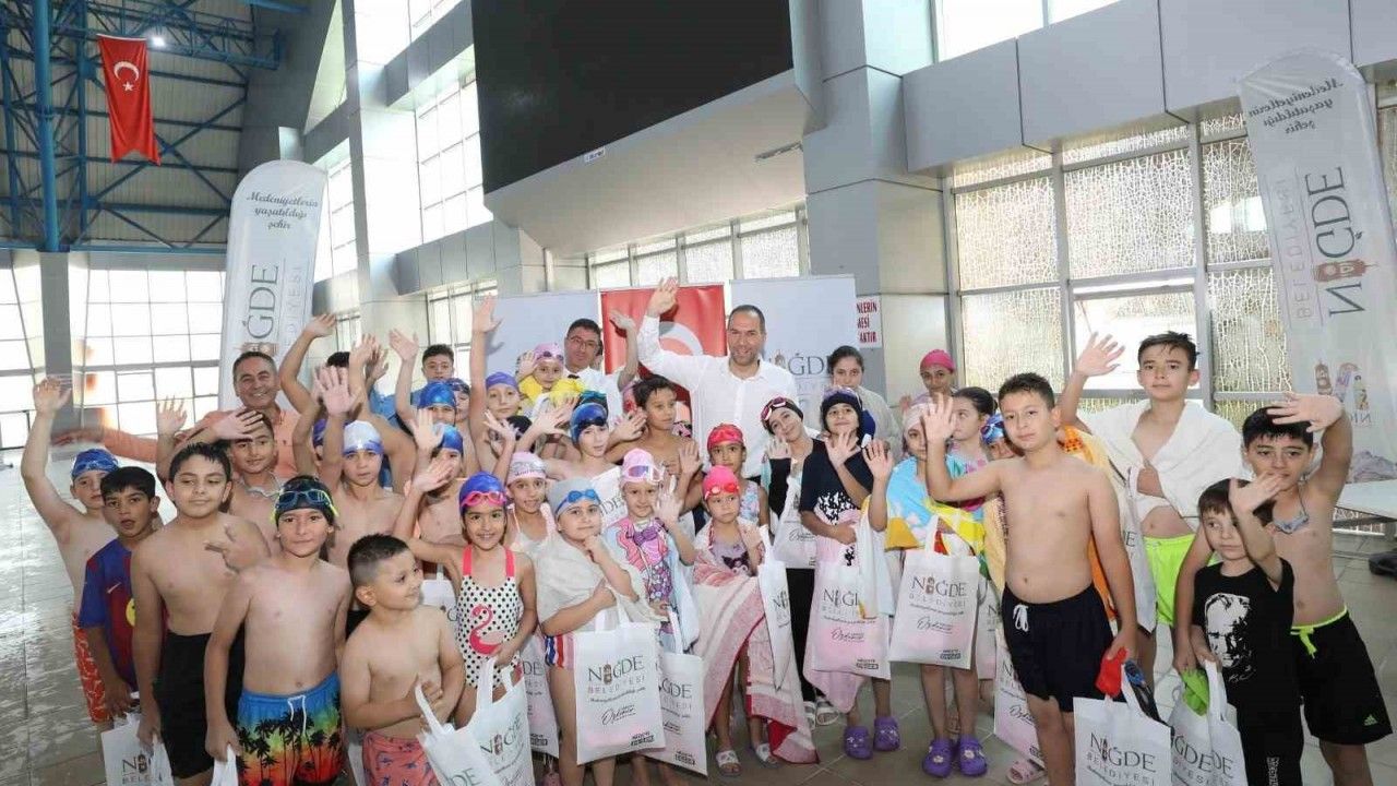 Başkan Özdemir yaptığı açıklamada, "Niğde Belediyesi olarak, çocuklarımızın erken yaşta sporla tanışmasına önem veriyoruz. Yaz Spor Okulları aracılığıyla çocuklarımıza yüzme, futbol, basketbol, voleybol gibi birçok branşta eğitim veriliyor. Yüzme eğitimi alan çocuklarımızı bir nebze olsun teşvik edebilmek amacıyla bone ve gözlük desteğinde bulunduk. Ekipman dağıtımını da bizzat yaparak çocuklarımızın heyecanına ortak olduk" ifadelerini kullandı.