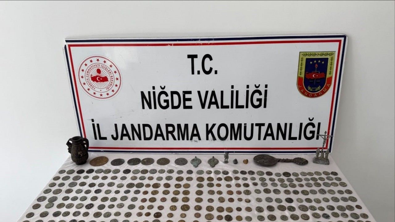 Niğde İl Jandarma Komutanlığı ekipleri, Kültür ve Tabiat Varlıklarını Koruma Kanunu’na aykırı hareket ettiği belirlenen bir şüpheliyi yakalarken, 334 parça da tarihi eser ele geçirildi.