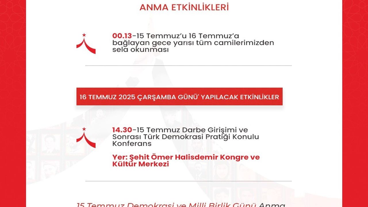 15 Temmuz Demokrasi ve Milli Birlik Günü dolayısıyla Niğde’de bir dizi anma etkinliği düzenlenecek.
