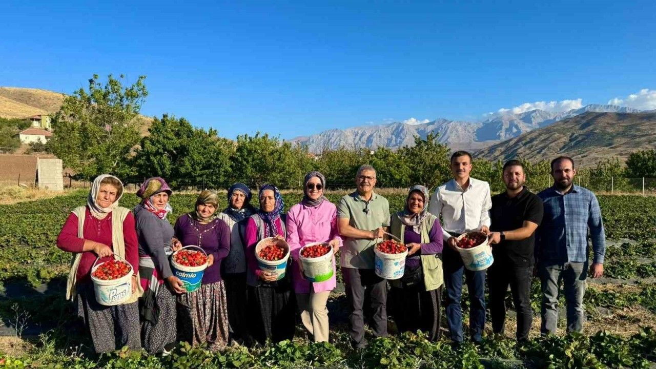 Niğde Valisi Cahit Çelik, eşi Nermin Çelik ve Ulukışla Kaymakam Vekili Emir Osman Gökçe ile birlikte Ulukışla ilçesine bağlı Bayağıl Köyü’nde düzenlenen çilek hasadına katıldı.