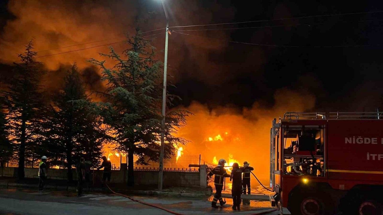 Niğde Organize Sanayi Bölgesi’nde bir fabrikada yangın çıktı. Ekiplerin yangına müdahalesi sürüyor.