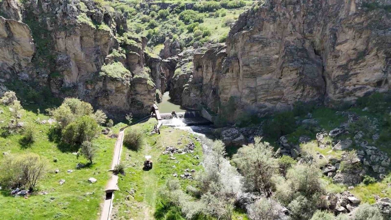 Niğde’nin Çiftlik ilçesine bağlı Çardak köyü sınırlarında yer alan ve eşsiz doğal dokusuyla dikkat çeken Dipsiz Kanyon, havadan görüntülendi.