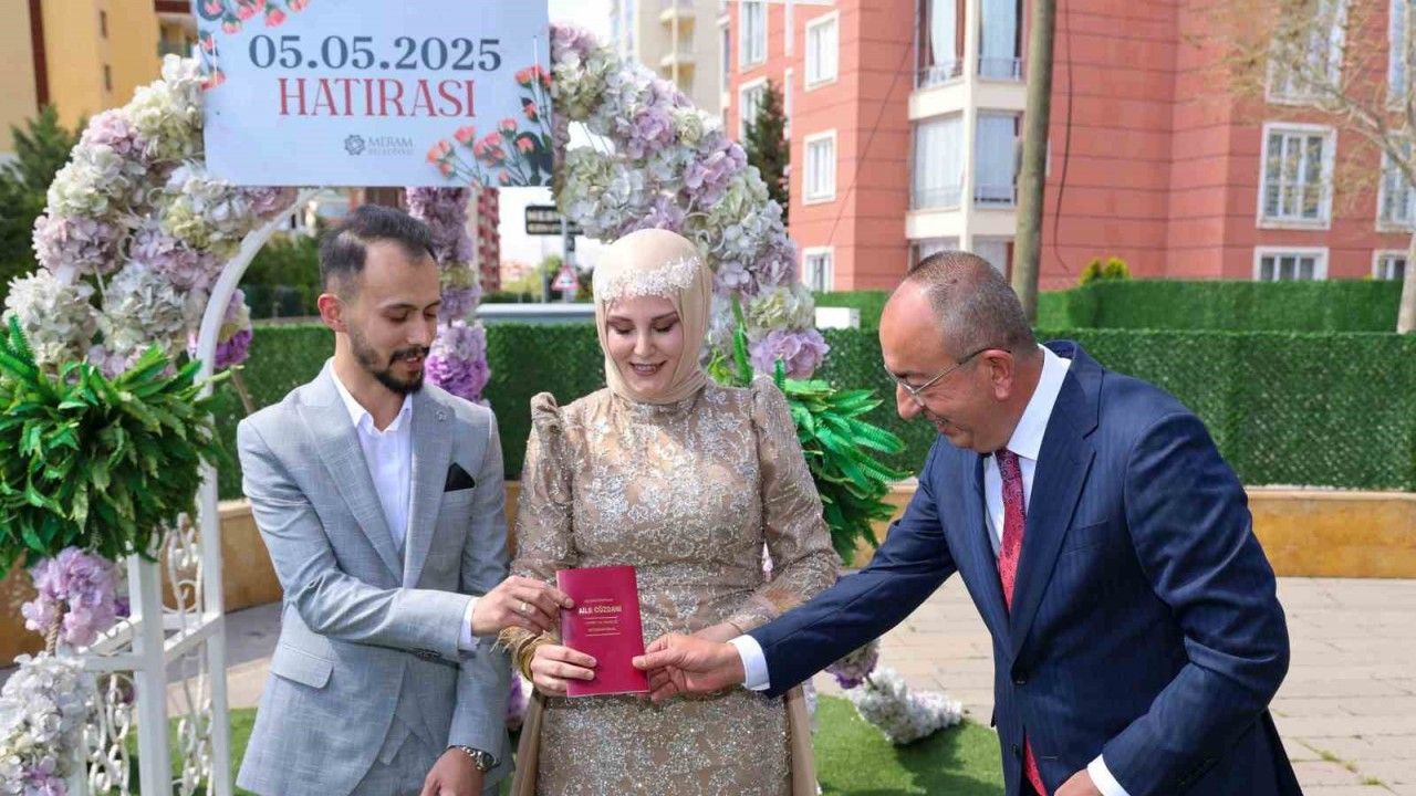 Konya’nın merkez Meram ilçesinde "05.05.2025" tarihini bir ömür boyu unutulmaz kılmak isteyen 42 çift, Meram Belediyesi Evlendirme Memurluğu’na başvurarak hayatlarını bu özel günde birleştirme kararı aldı. Sabahın erken saatlerinden itibaren Fahrünnisa Hatun Kültür Merkezi’nde bulunan Meram Belediyesi Evlendirme Memurluğu’na gelen çiftler evliliklerini bu özel günle taçlandırırken, nikah memurlarının tempolu çalışmasıyla neredeyse 11 dakikada bir çiftin nikahı kıyıldı. Meram Belediye Başkanı Mustafa Kavuş da çiftlerin aileleri ile birlikte bu özel ana tanıklık etti. Bu unutulmaz günde çiftleri yalnız bırakmayan Başkan Kavuş, bazı çiftlerin nikahını bizzat kendi kıydı ve bugün nikah kıyan tüm çiftlere de ömür boyu mutluluk diledi. Genç çiftler bugünü özellikle seçtiklerini belirterek, mutluluklarını dile getirdiler.