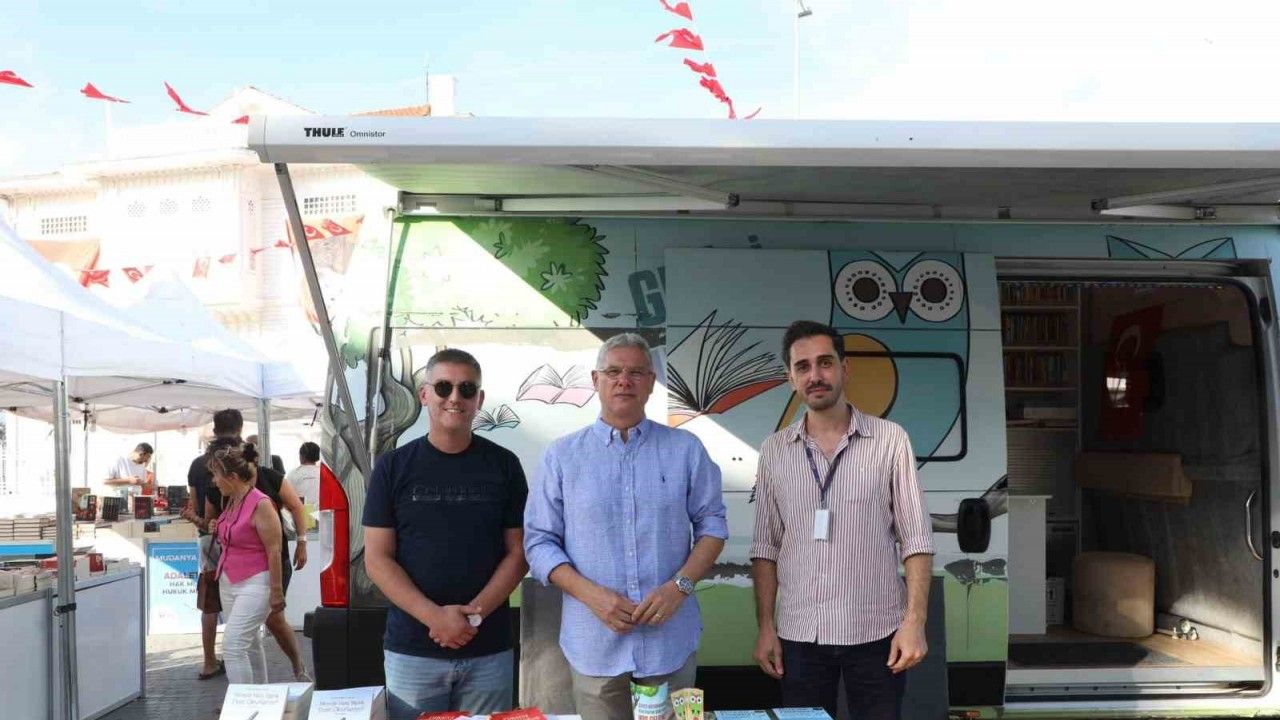 Mudanya Belediye Başkanı Deniz Dalgıç da Nilüfer Belediyesi Gezici Kütüphane’yi ziyaret ederek, kütüphanenin faaliyetleri hakkında bilgi aldı ve Nilüfer Belediyesi’nin yayınlarını inceledi.