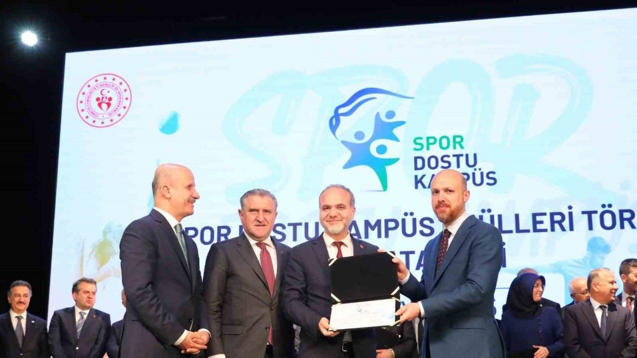 Recep Tayyip Erdoğan Üniversitesi ev sahipliğinde düzenlenen Spor Dostu Kampüs Ödülleri Belge Takdimi Töreni’nde, Rektör Prof. Dr. Hasan Uslu’ya "Spor Dostu Kampüs Belgesi", Gençlik ve Spor Bakanı Osman Aşkın Bak, Yükseköğretim Kurulu Başkanı Prof. Dr. Erol Özvar ve Bilal Erdoğan tarafından takdim edildi.