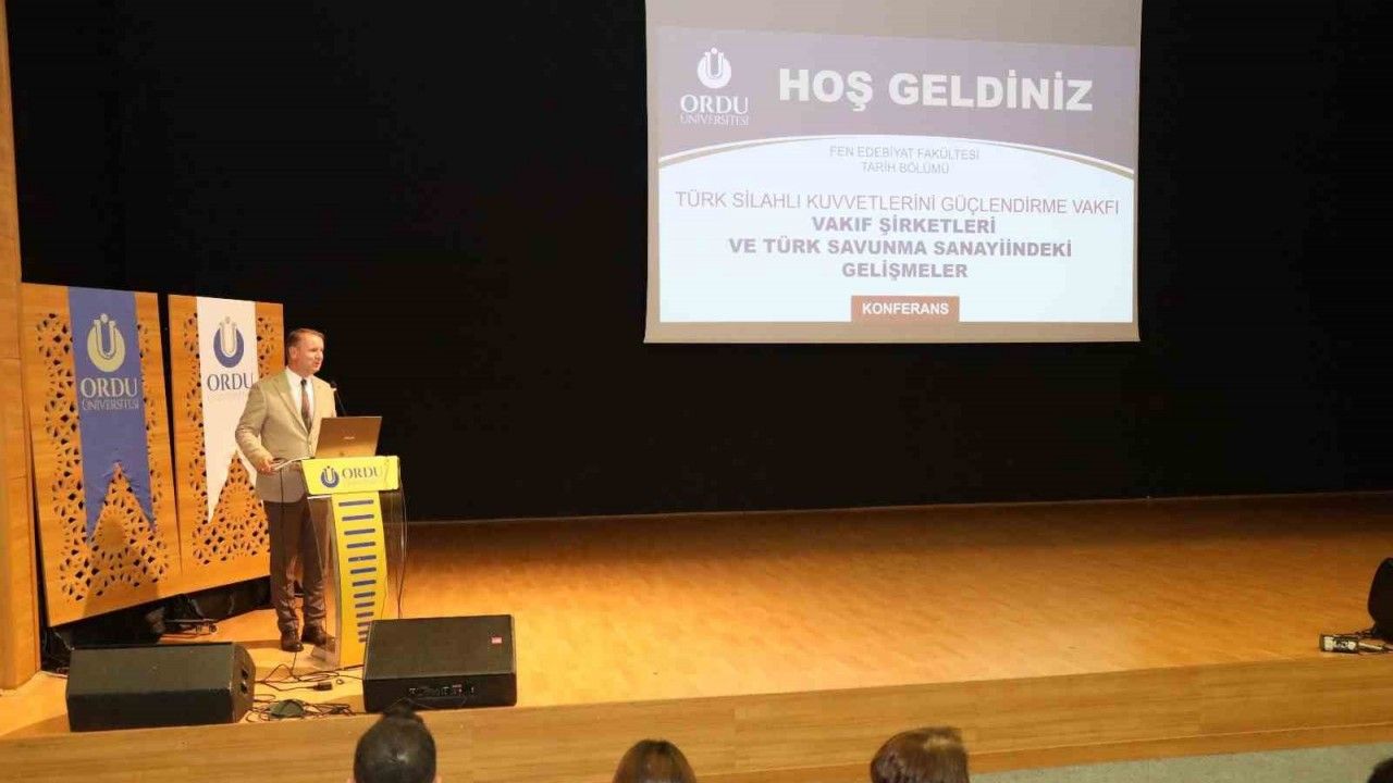 Ordu Üniversitesi morfoloji binasında, Türkiye’nin savunma sanayii stratejileri ve yerli teknolojinin ele alındığı "Türk Silahlı Kuvvetlerinin Güçlendirme Vakfı, Vakıf Şirketleri ve Türk Savunma Sanayindeki Gelişmeler" başlıklı konferans gerçekleştirildi. Fen Edebiyat Fakültesi Tarih Bölümü tarafından düzenlenen konferansa konuşmacı olarak katılan Türk Silahlı Kuvvetlerini Güçlendirme Vakfı (TSKGV) Genel Müdür Yardımcısı Emekli Tuğgeneral Erhan Sipahioğlu, Türkiye’nin coğrafi konumu, modern savaşlardan çıkarılan dersler ve yerli teknoloji konusunda dinleyicileri bilgilendirdi.