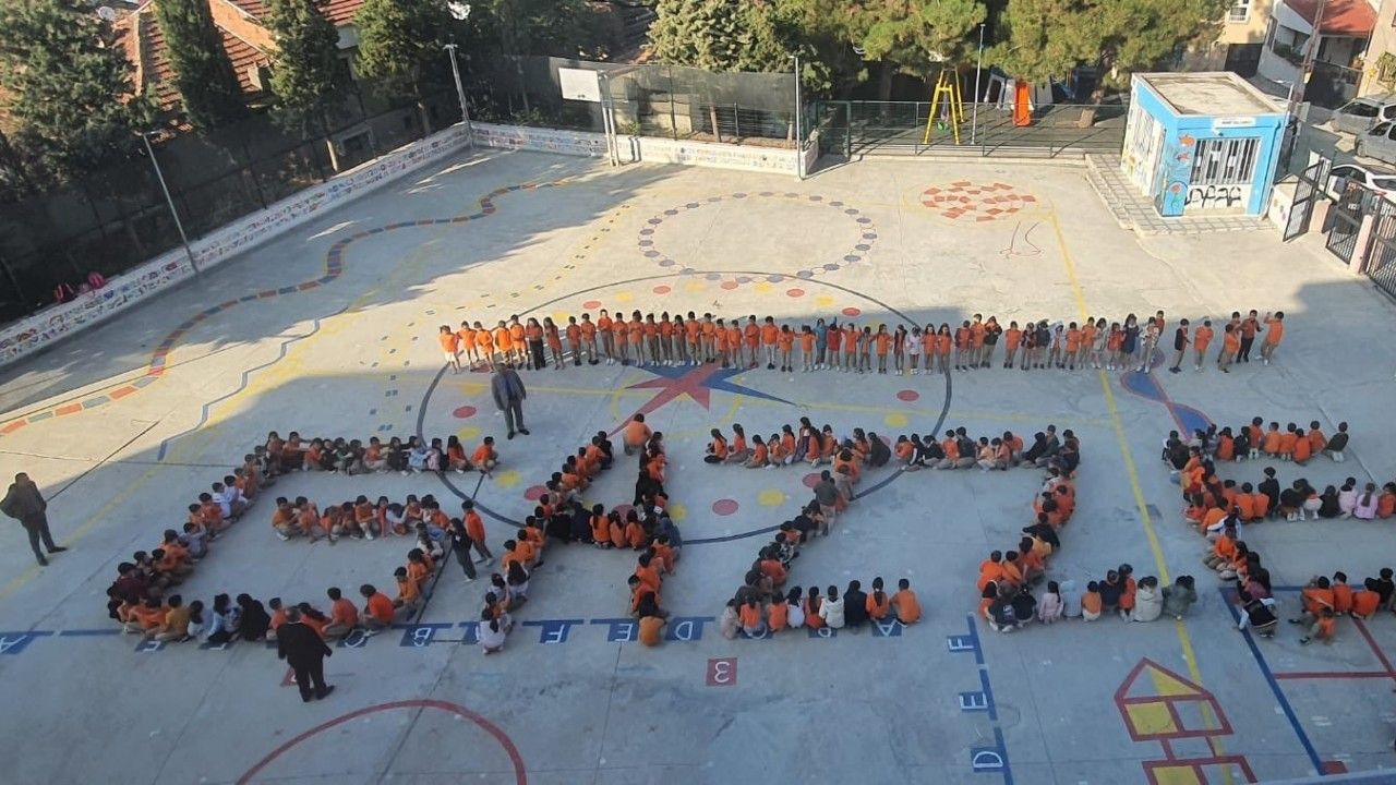 Etkinlik kapsamında öğrenciler, öğretmenlerinin rehberliğinde Filistin bayrakları taşıdı ve Gazze’de yaşanan insani dramın son bulması için temennilerde bulundu.
