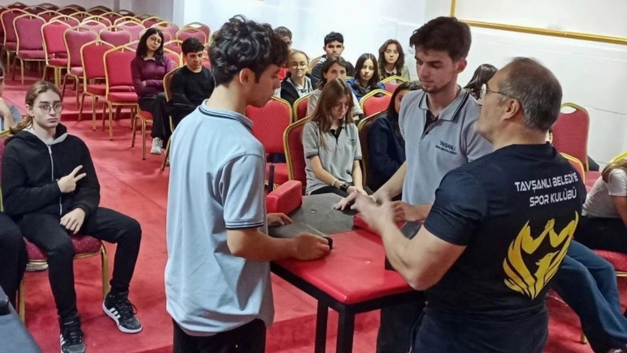 Kütahya’nın Tavşanlı ilçesinde gençleri spora teşvik etmeyi sürdüren Tavşanlı Belediye Spor Kulübü, bilek güreşi branşının inceliklerini liseli gençlere anlattı.