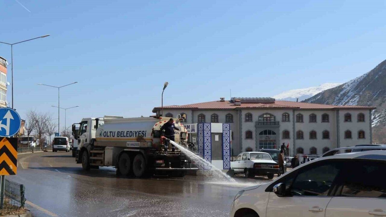 Oltu Belediyesi, baharın gelmesiyle birlikte ilçedeki caddelerde kapsamlı bir temizlik çalışması başlattı. Temizlik ekipleri, iki su tankeri ile tazyikli su ve fırça kullanarak kış aylarında biriken kir ve tozu temizliyor.
