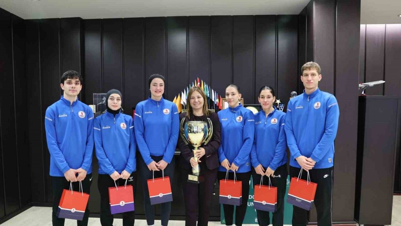 OMÜ Rektörü Prof. Dr. Fatma Aydın, Polonya’nın Varşova kentinde düzenlenen Avrupa Üniversiteler Dövüş Sporları Şampiyonası’nda taekwondo branşında Avrupa şampiyonu olan OMÜ öğrencilerini makamında kabul etti. Ziyarete Yaşar Doğu Spor Bilimleri Fakültesi Dekanı Prof. Dr. Murat Eliöz, Dekan Yardımcısı Prof. Dr. Yıldırım Kayacan, Sağlık Kültür Spor Daire Başkanı Öğr. Gör. Selman Aslan ile antrenörler Sebahattin Yaşar ve Engin Keskin de katıldı. Rektör Aydın, elde edilen büyük başarı nedeniyle sporcuları tebrik ederek, OMÜ’nün spor alanındaki gücünü bir kez daha gösterdiğini belirtti.