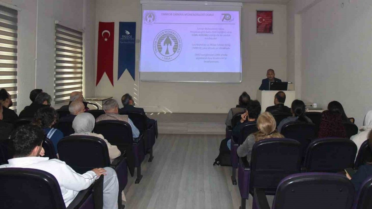 DÜZCE(İHA) – Düzce Üniversitesi Orman Fakültesi tarafından, öğrencileri sektör temsilcileriyle bir araya getirmek amacıyla düzenlenen "Orman Mühendisleri Odası Öğrencilerle Buluşuyor" başlıklı etkinlik gerçekleştirildi.