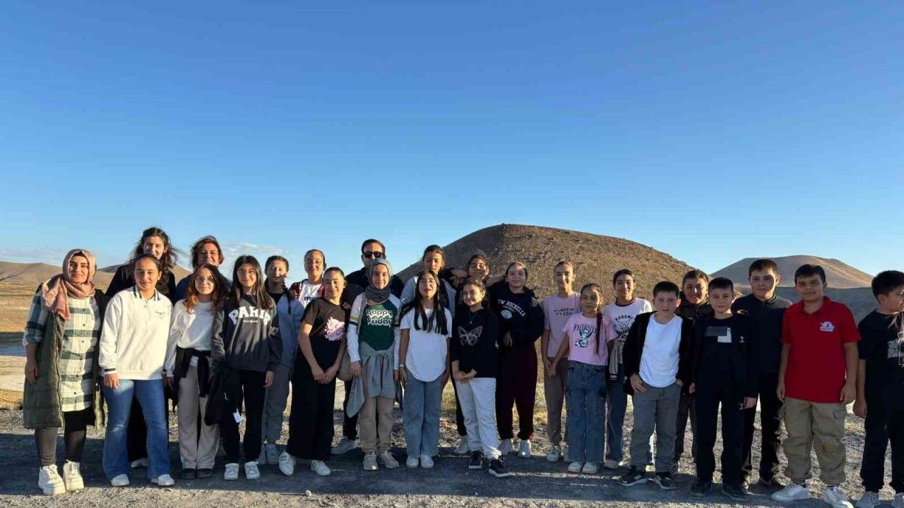 Konya’nın Karapınar ilçesinde ortaokul öğrencileri Fen Bilimleri dersi için Meke Krater Gölü’nde Ay ve Satürn gezegenini gözlemleme fırsatı buldu.