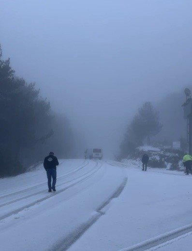 Yağışa hazırlıksız yakalanan bazı sürücüler araçlarını yol kenarına çekerek dolunun etkisini azaltmasını bekledi. Yetkililer, sürücüleri dikkatli olmaları konusunda uyardı.