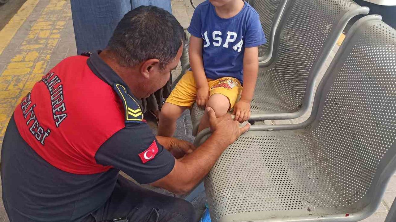 Şanlıurfa’da otobüs beklerken ayağı oturağın arasına sıkışan 5 yaşındaki çocuğun yardımına itfaiye yetişti.