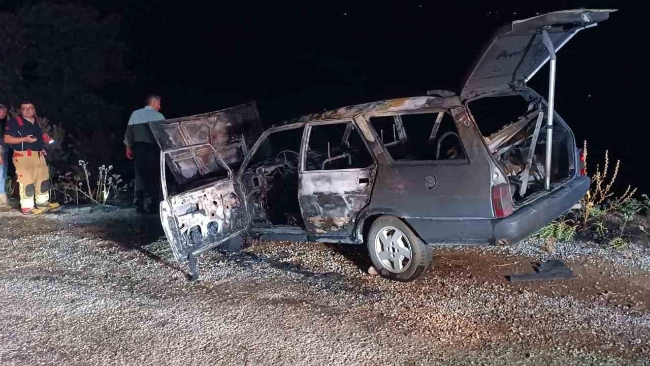 Manisa’nın Alaşehir ilçesinde sürücüsünün farlarını açtığı otomobil seyir halindeyken birden alev alarak yandı. Yangın ormanlık alana sıçramadan söndürüldü.