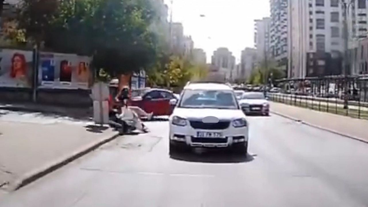 Yaşanan kaza anları ise başka aracın kamerasına yansıdı. Görüntüde, sağa dönmek için ani manevra yapan otomobilin motosikletli kuryeye çarpma anları ve kuryenin metrelerce savrularak yere düşme anları yer aldı.