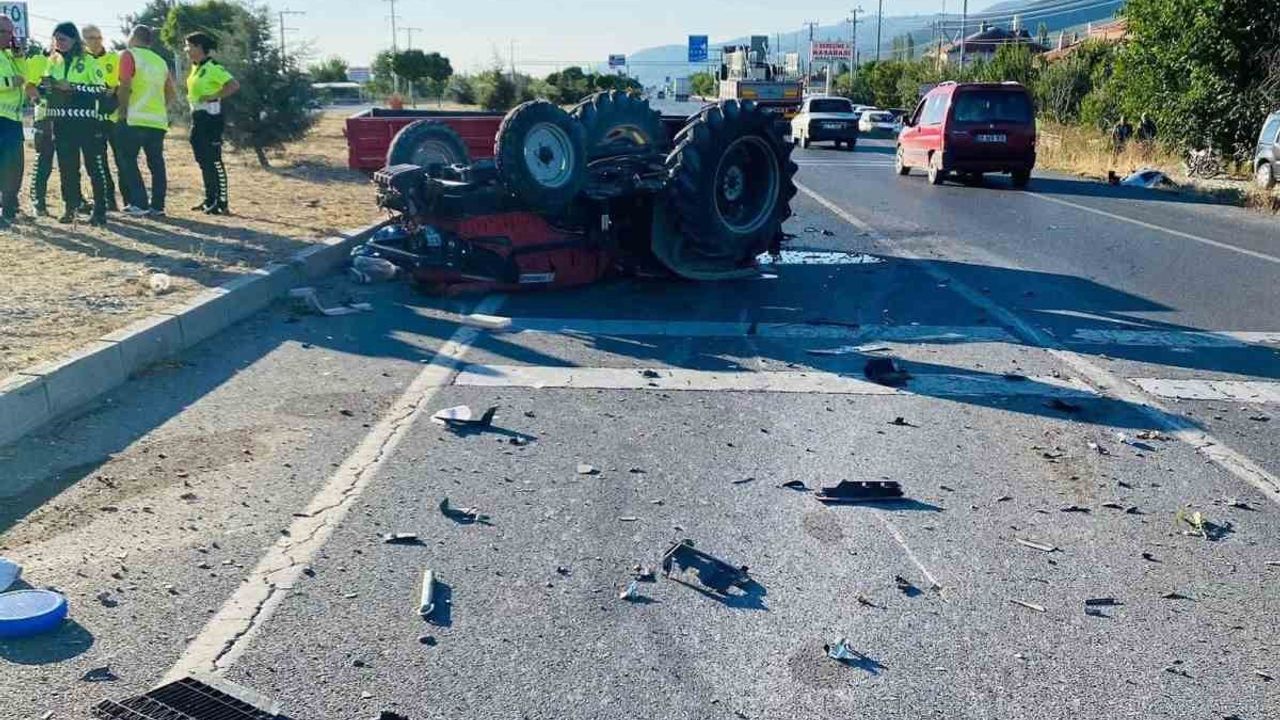 Afyonkarahisar’da otomobilin çarpması sonucu devrilen traktör sürücüsü olay yerinde hayatını kaybederken kazada bir kişide yaralandı.