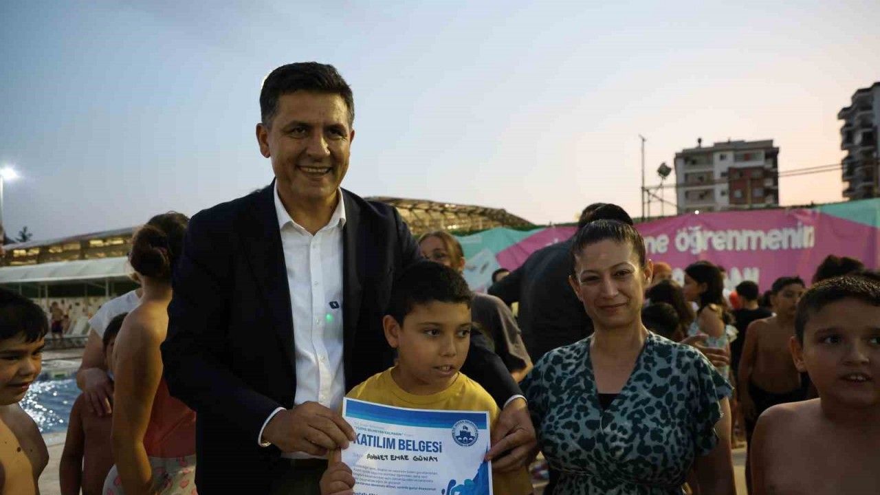 Kozan Belediyesi ile Gençlik ve Spor İlçe Müdürlüğü’nün iş birliğiyle yaz dönemi boyunca ’Yüzme Bilmeyen Kalmasın’ sloganıyla düzenlenen kurslara 500 öğrenci katıldı. Mehmet Açıkgöz Yüzme Havuzunda düzenlenen ücretsiz kurslara katılan 7–13 yaş arası çocuklar, haftanın 5 günü nefes alma, kulaç atma, suyun üstünde kalma ve koordineli yüzme eğitimleri aldı. Kursu başarıyla tamamlayan çocuklar sertifikalarını alırken, özel bireyler de yüzme sayesinde hem yazın keyfini çıkardı hem de kendilerine güveni geldi. Serebral Palsi hastası Ahmet Emre Günay ile otizm tanısı bulunan 3 öğrenci de yüzme kursunu başarıyla tamamladı. Program sonunda Kozan Belediye Başkanı Mustafa Atlı’da gençlerle birlikte yüzdü.