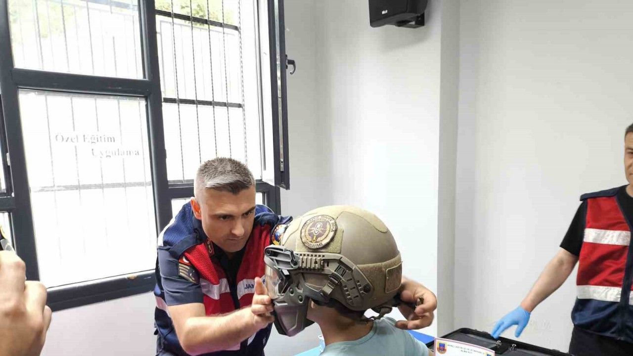 Mersin’de özel bireyleri ziyaret eden jandarma personeli, araç, gereç ve teçhizatları hakkında bilgi verip neşeli vakit geçirmelerini sağladı.