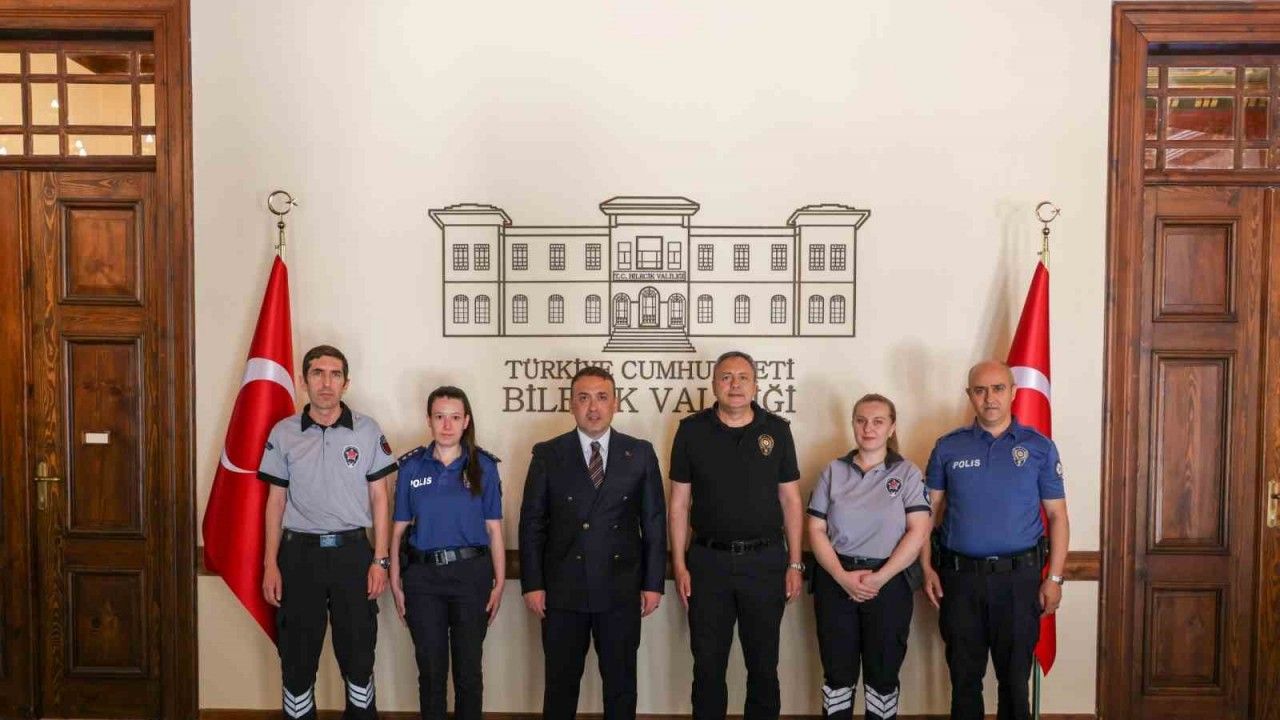 Bilecik Valisi Faik Oktay Sözer, özel güvenlik görevlilerini makamında kabul etti.