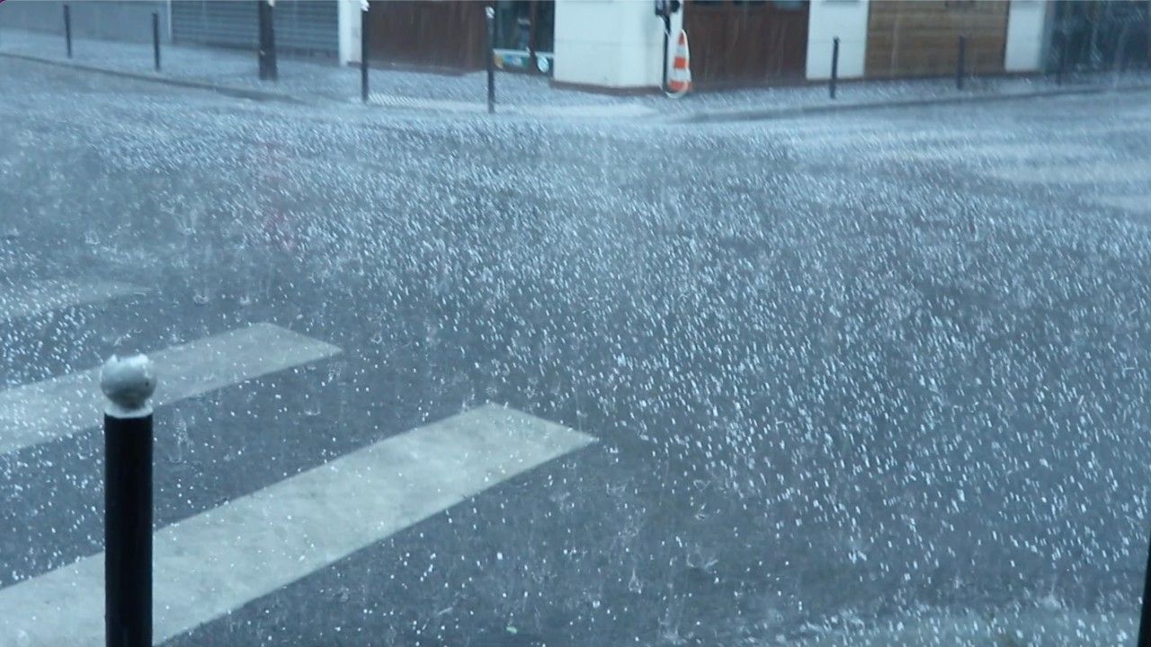 Fransa’nın başkenti Paris’te termometrelerin 25 dereceyi gösterdiği sırada ceviz büyüklüğünde dolu yağdı.