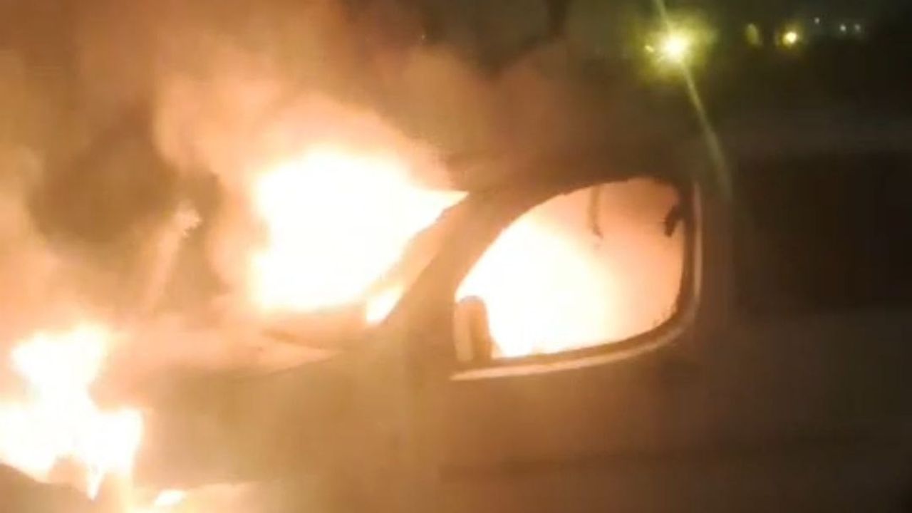Adana'nın Kozan ilçesinde park halindeki otomobil alev alev yandı.