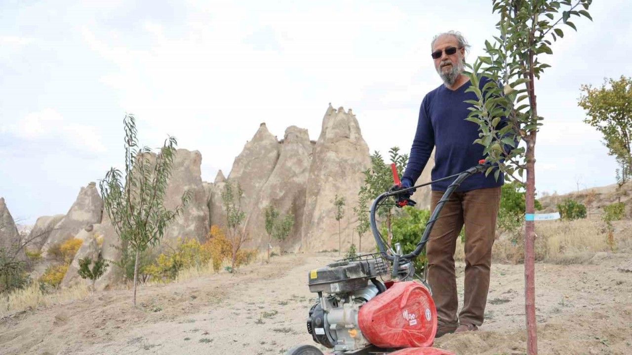 Balon turlarının her sabah gökyüzünü renklendirdiği bölgede, Peribacaları’nın arasında dikilen ağaçlar hem doğaya hem de görsel güzelliğe katkı sağlıyor. Lütfü Höke ve eşi, diktikleri fidanların bakımını da özenle yapıyor.
