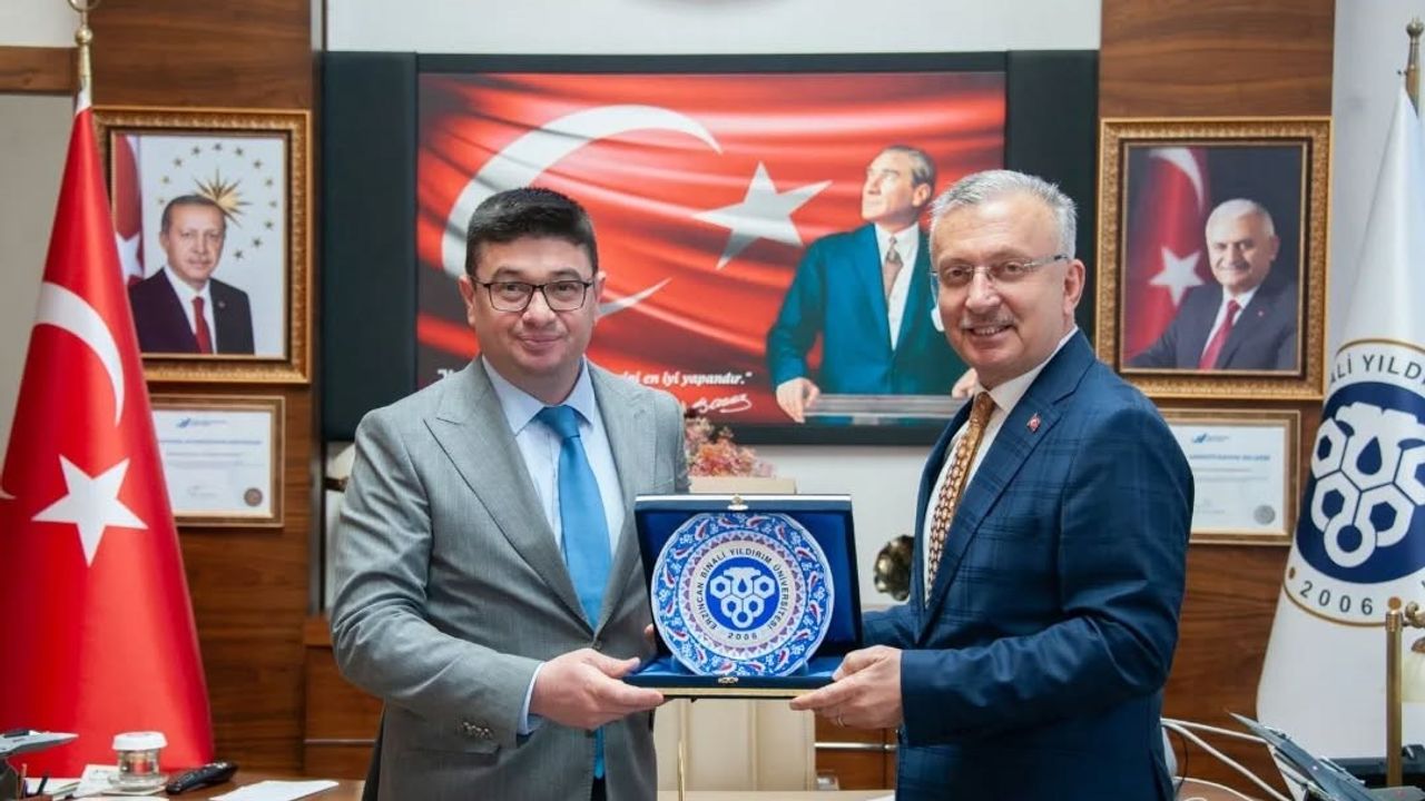 Rektörlük makamında gerçekleşen ziyarette Başkonsolos Zamin Aliyev’e Başkonsolos Yardımcısı Elnur Salayev de eşlik etti. Görüşmede iki ülke arasındaki köklü kardeşlik ilişkileri vurgulanarak, kültürel iş birliklerinin yanı sıra akademik alanda gerçekleştirilebilecek projeler, değişim programları ve ortak çalışmalar değerlendirildi.