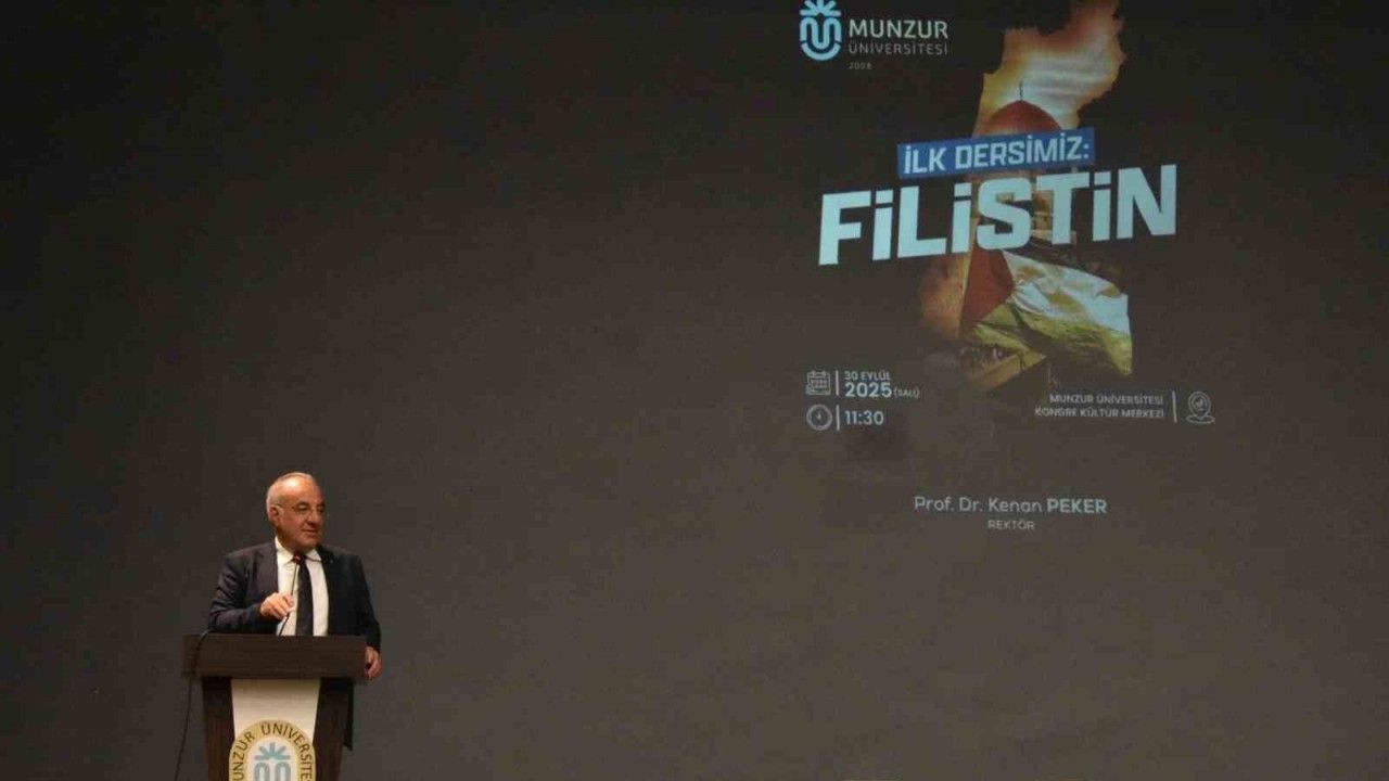 Munzur Üniversitesi Rektörü Prof. Dr. Kenan Peker öğrencilerle bir araya gelerek Gazze’de yaşanan insani dramı hatırlattı ve Filistin meselesinin insanlık sorunu olduğunu vurguladı.