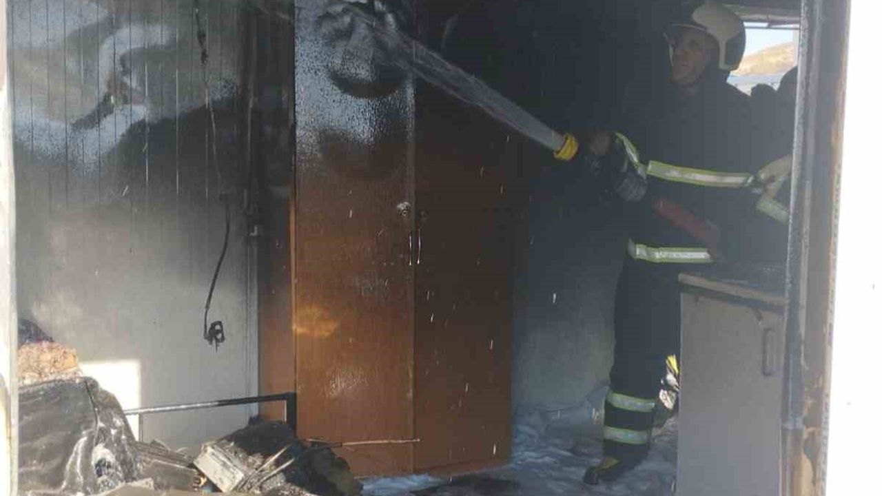 Hatay’da çıkan yangında konteyner kullanılmaz hale geldi.