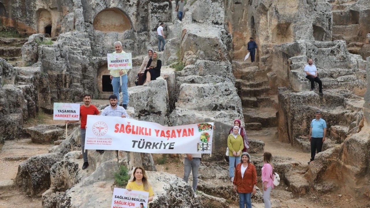 Halk Sağlığı Hizmetleri Başkanı Dr. Mustafa Kutlu, Acil Afetler Şube Müdürü Tülay Altuğ, sağlık çalışanları ve kurum personellerinin de katılım gösterdiği "Sağlık için hareket et" etkinliği kapsamında Adıyaman’ın tarihi yerleri gezildi.