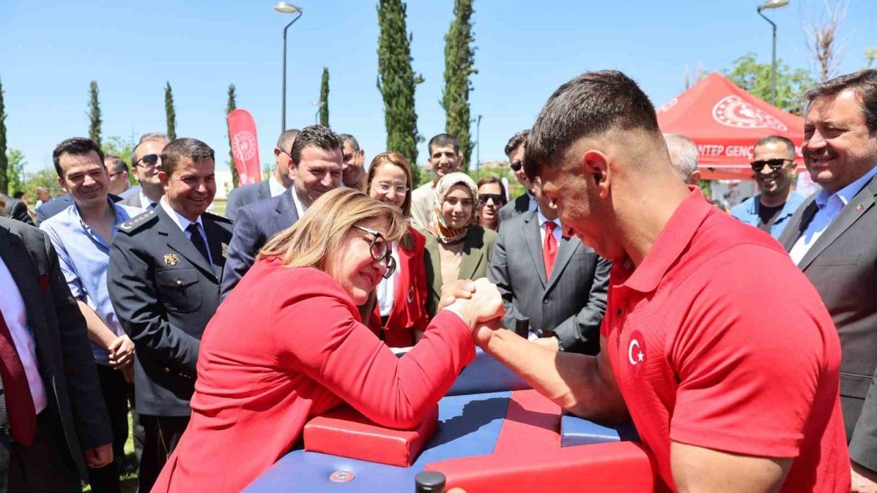 Gaziantep Büyükşehir Belediye Başkanı Fatma Şahin, 19 Mayıs Atatürk’ü Anma Gençlik ve Spor Bayramı etkinliklerinde yer alan sporcuyla bilek güreşi yaptı.
