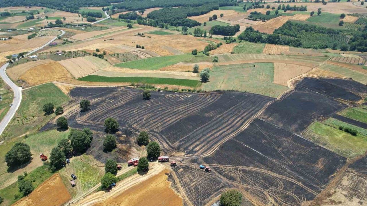 Sakarya’nın Adapazarı ilçesinde çıkan yangında buğday ve arpa ekili 150 dönümlük alan küle döndü.