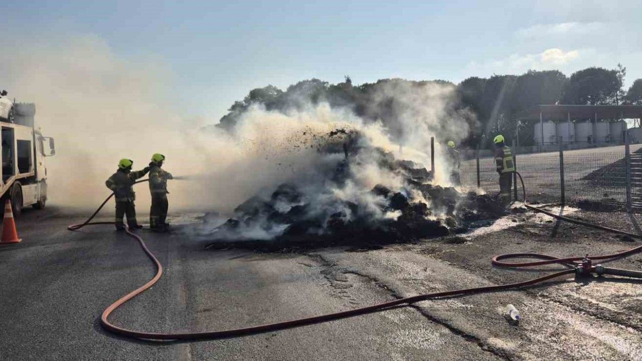 Balıkesir’in Susurluk ilçesinde seyir halindeki saman yüklü bir kamyonette yangın çıktı. Olay yerine sevk edilen itfaiye ekipleri alevlere müdahale etti.
