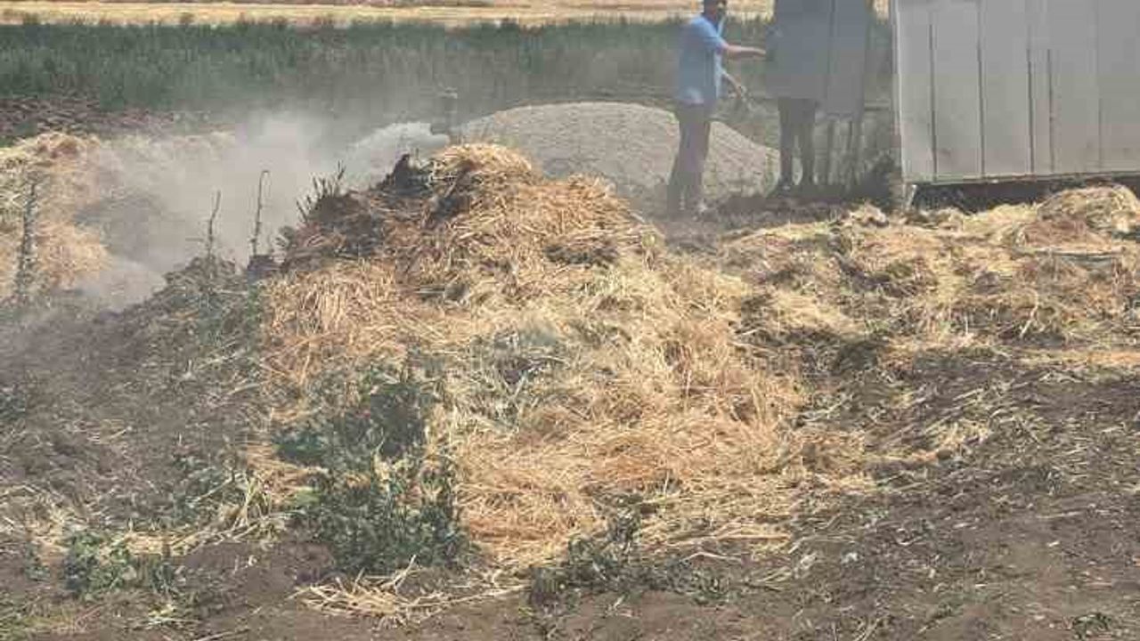Afyonkarahisar’ın Şuhut ilçesinde saman balyası yüklü tırın elektrik tellerine temas etmesiyle çıkan yangında araç küle dönerken, araziye sıçrayan yangın itfaiye ekiplerinin ve vatandaşların yoğun çabasıyla büyümeden söndürüldü.