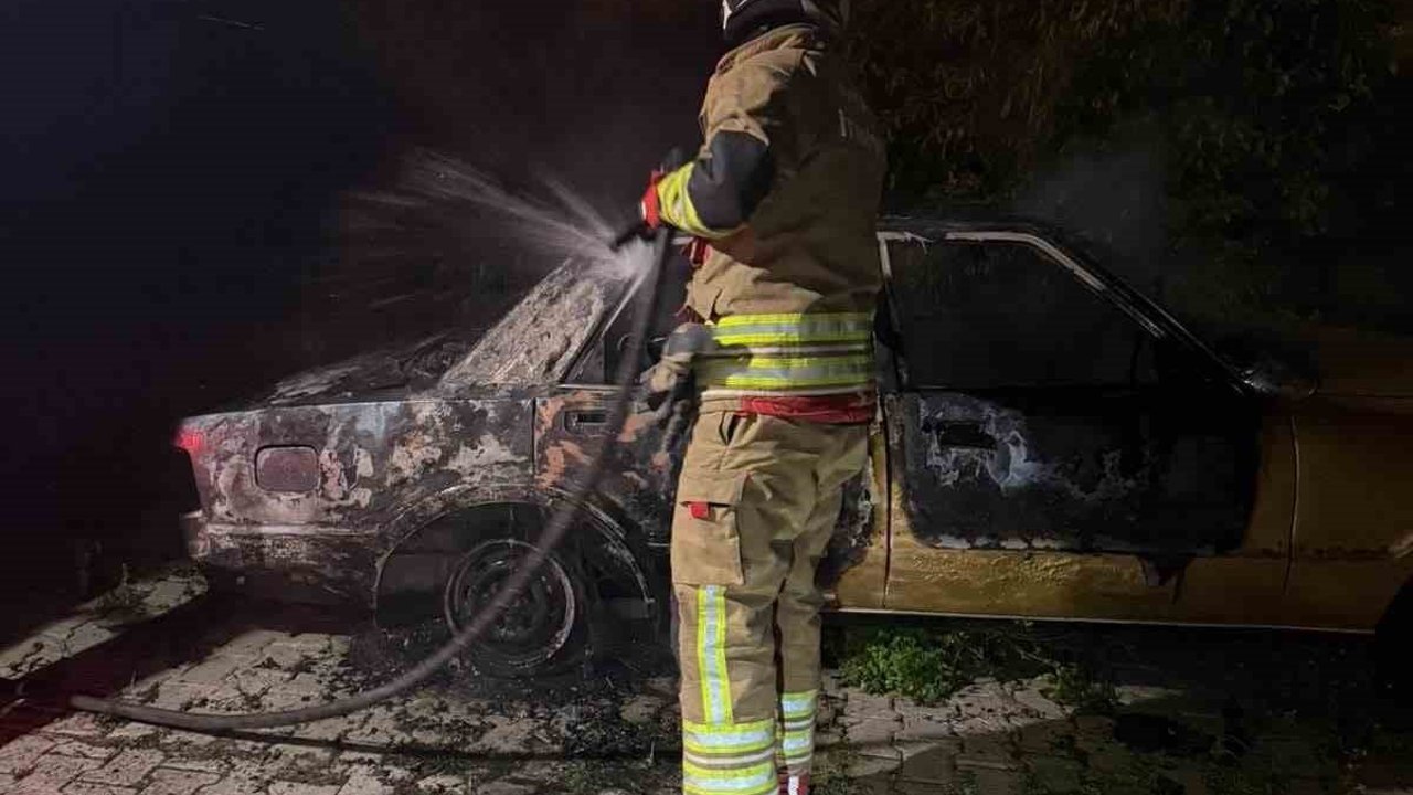 Hatay'da park halindeyken alevlere teslim olan FİAT TOFAŞ marka otomobil yanarak kullanılmaz hale geldi.